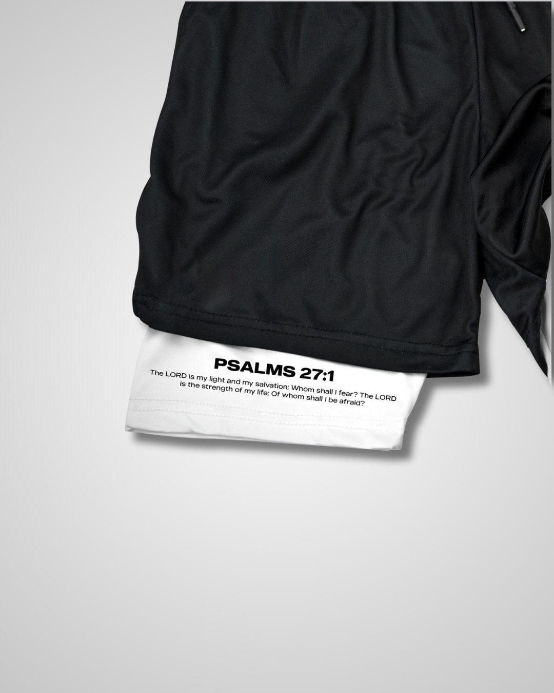 Look good and watch your motivation grow in these limited-edition Christian performance shorts featuring the Psalms 27:1 Bible verse: